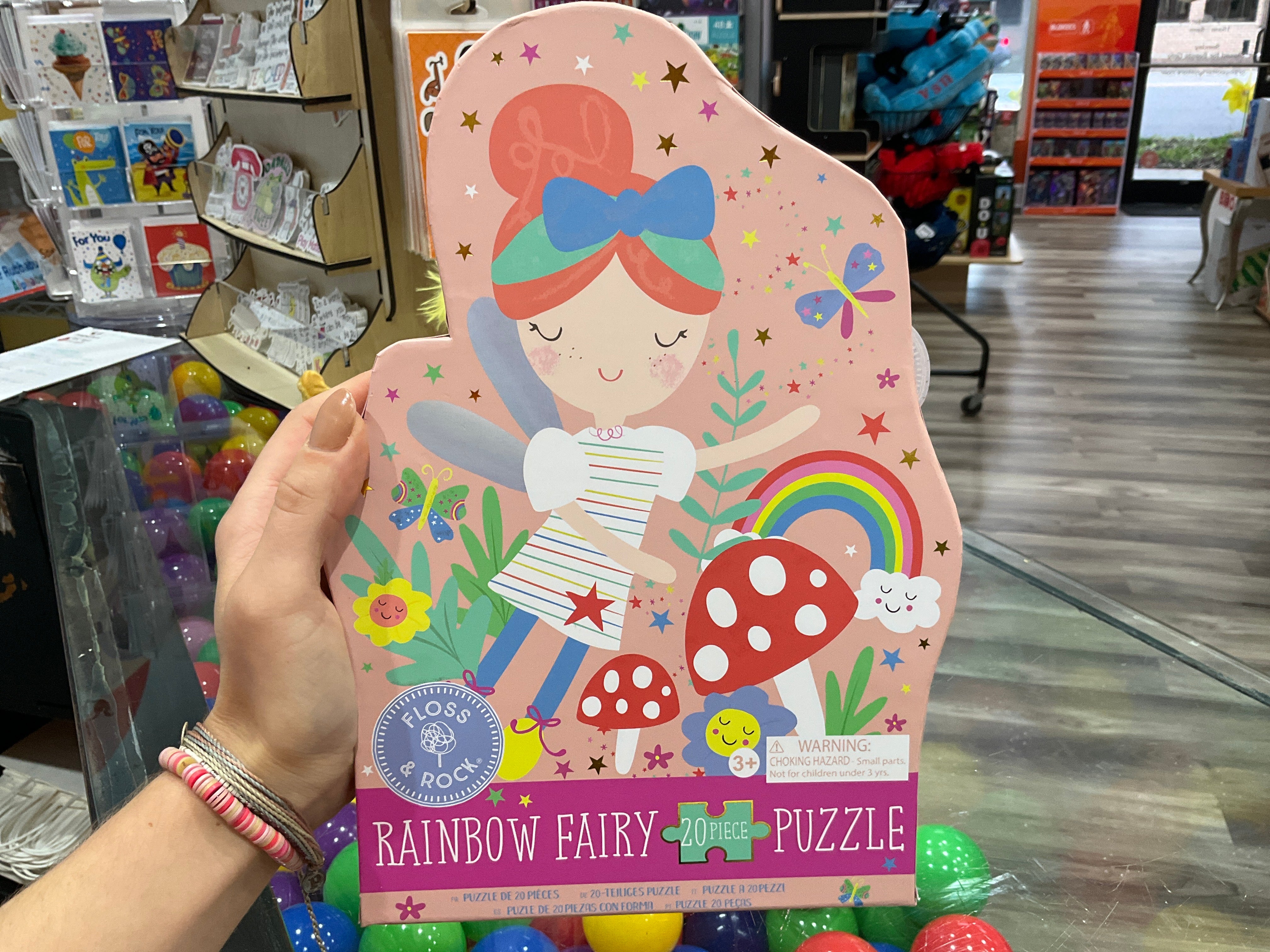 This fun shaped box contains 20 brightly coloured puzzle pieces that make an actual Fairy shaped puzzle with Unicorns, Fairies, Rainbows and more. Both the puzzle and the box have shiny foiled detail. Both the puzzle and the box feature shiny foiled details. Suitable for 3+.