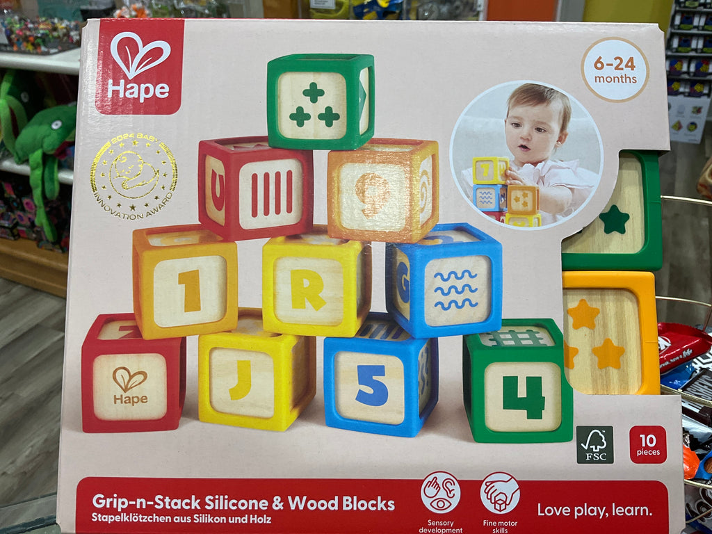 Hape Grip-n-Stack silicone and wood blocks