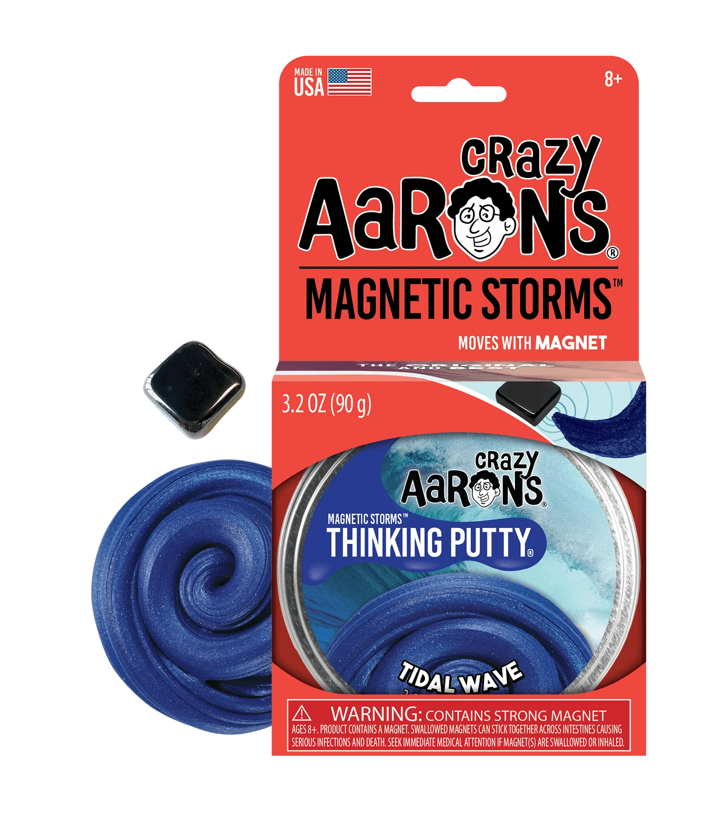 Created to mimic the effect of a giant swell, Tidal Wave Thinking Putty® comes with a powerful magnet to help you create incredible effects. Charge the putty with the magnet and watch as the iridescent blue crest moves toward it in an invisible magnetic field. You’ll even see ripples on the surface just like the sea.