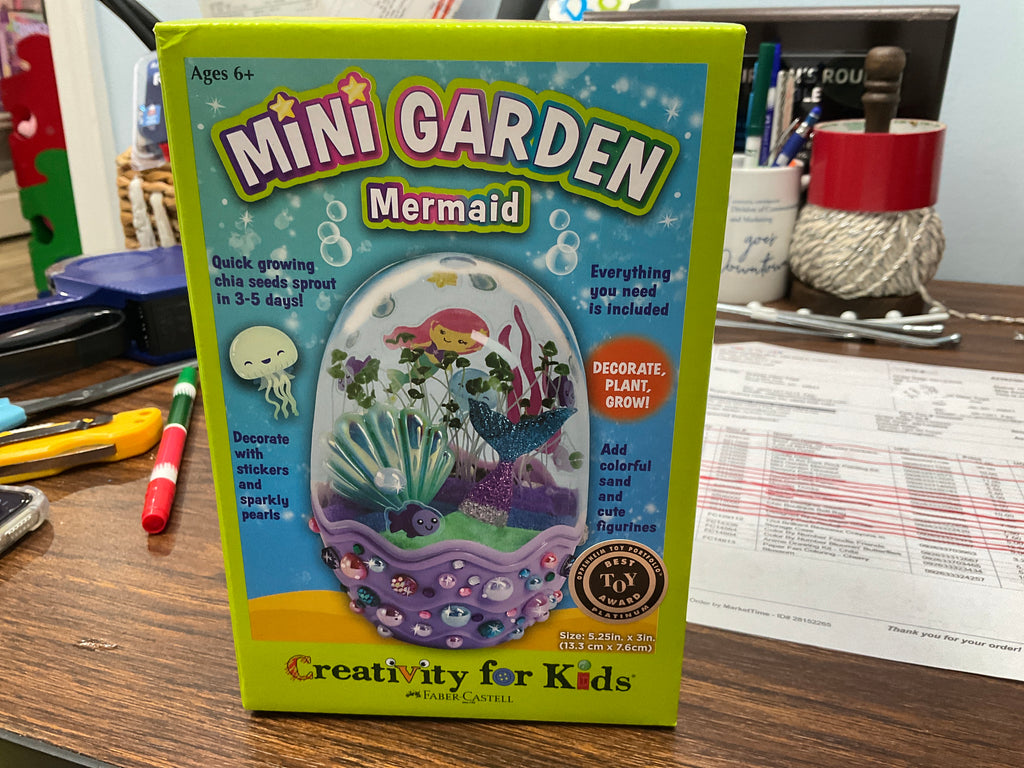 Mini Gardens available in 3 themes – Unicorn, Mermaid or Dinosaur – collect all three! Chia seeds start sprouting in 3-5 days. Finished gardens measure 5 ¼” h x 3” w.