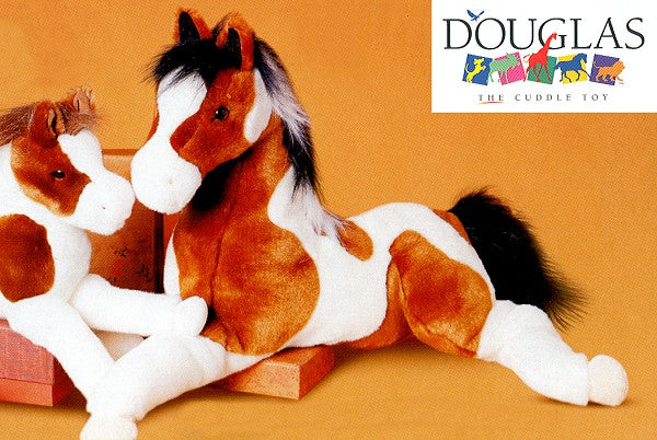 Ride off into the sunset with your very own Indian pony and let Natches the Paint Horse lead you to all the fun and adventure of the Wild West! Crafted with a gorgeous pinto patterned coat, this plush horse is soft and cuddly and certain to catch your eye! Natches features an elegant reclining pose that is great for hugs or displaying on a bed or couch while springy polyester fill ensures this stuffed animal will hold up to a lifetime of hugs. A white and black streaked mane and tail reflect his bay pinto patterning and bring additional flair to his appealing design. Look into the gentle, amber colored eyes of this handsome plush pony and you’ll know you’ve found a friend for life!