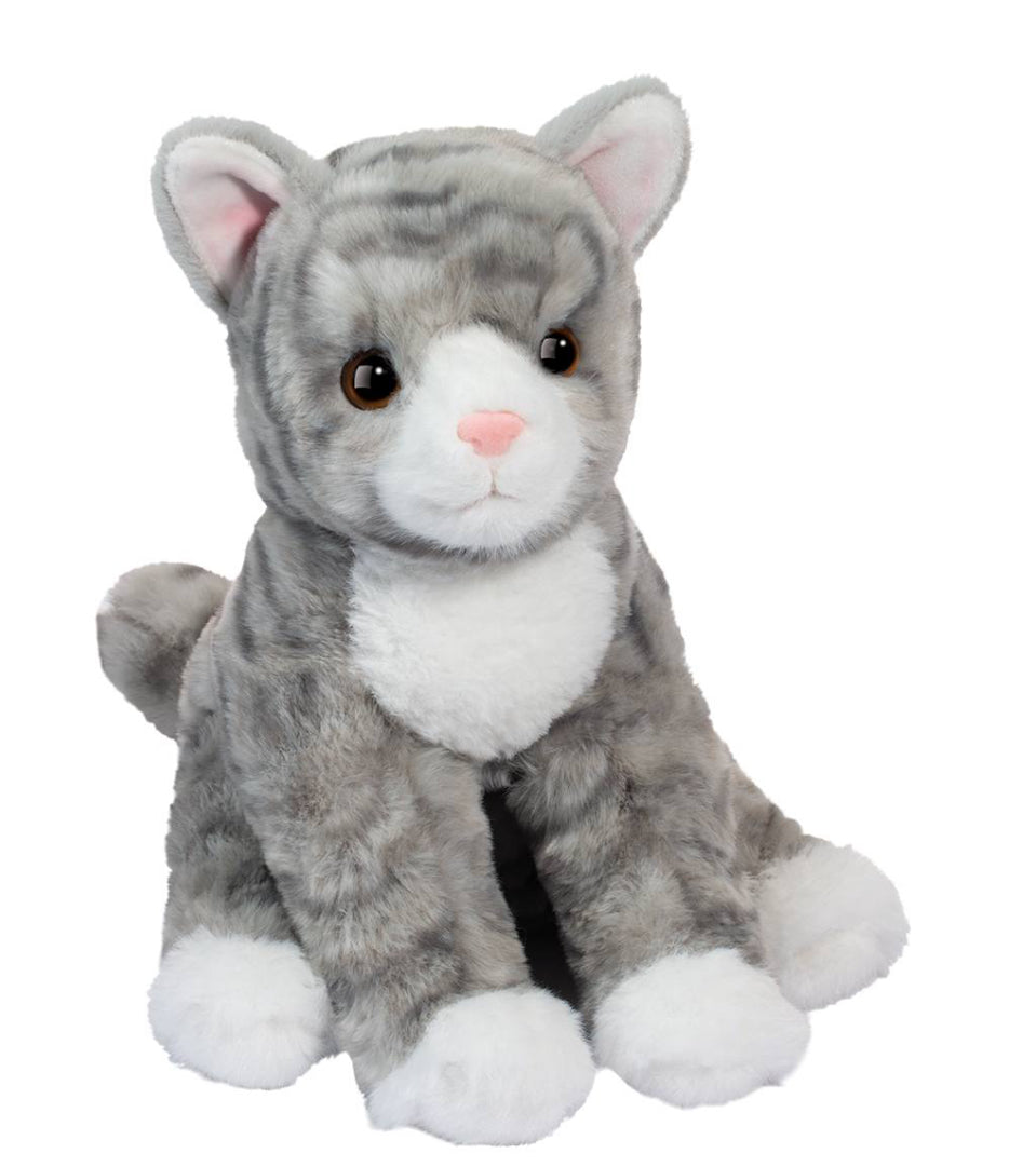 With her striking coat of soft, plush fabric in a gray striped tabby pattern, her big eyes full of love, and her embroidered little smile, we don’t think there’s anyone more perfect for snuggling up with after a long day.