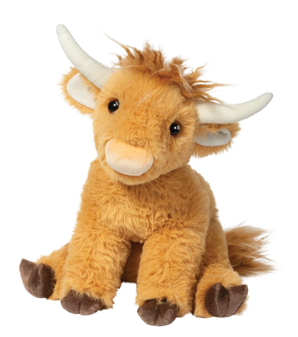 Scottie is an endearing young Highland Cow stuffed animal whose breed has a long and fascinating history. Brought to the rugged land of Scotland in the Bronze Age, this charismatic variety of cattle developed their famously shaggy coats to keep warm in the strong winds of the Highlands. Tangly tufts of reddish hair on Scottie’s head and tail accent his appearance and lend him a lifelike look, brimming with charm and personality. Soft, cloven hooves and large, sweet eyes complete his heartwarming design. Crafted with a floppy body style and luxurious plush fabrics, our charming rendition of this beloved Scottish breed is a worthy addition to our cuddly Soft plush collection!