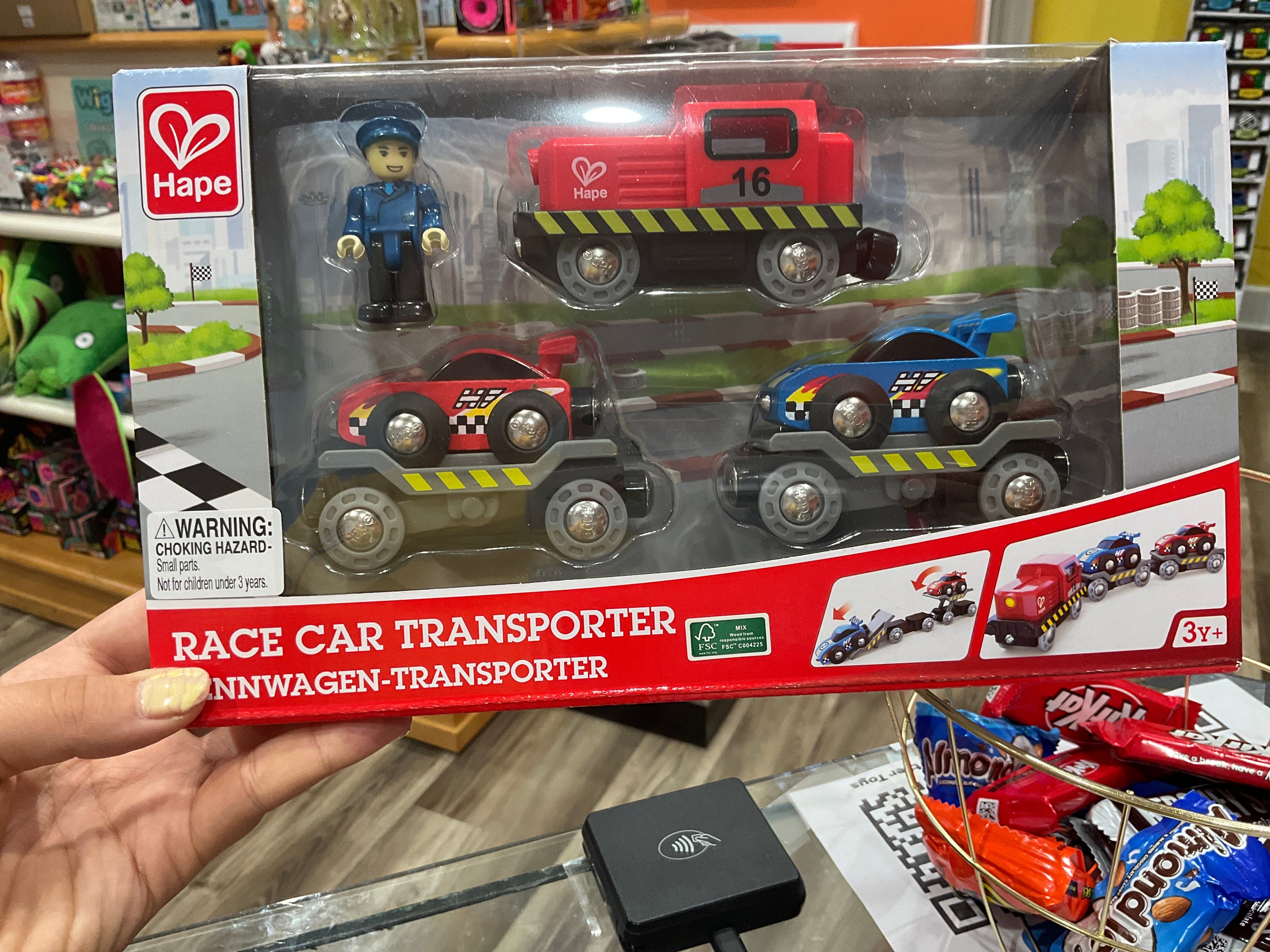 Hape Race Car Transporter is backordered and will ship as soon as it is back in stock.