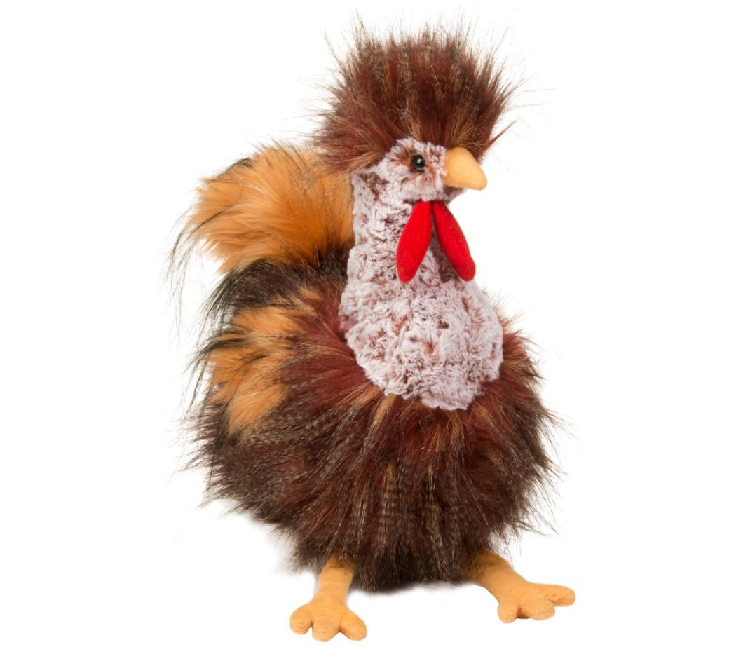 Cock-a-doodle-doo!! Ricardo the Rooster stuffed animal is here to herald in a fresh new day! He’s one rooster that’s happy on the farm or in your home. And with his ultra soft materials and playful floppy body, you’ll want to invite him over right away. Crafted with specialty fabrics that mimic the pattering of feathers and realistically finished with alert, black eyes and a bright red wattle, this beautiful plush bird is ideal for cuddly hugs. Perfect for playtime adventures or aficionados of our feathery friends, Ricardo the plush Rooster is sure to get fans crowing about him!