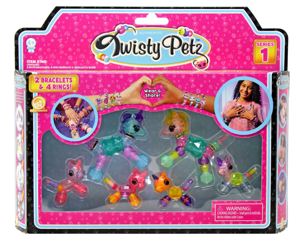 Transform adorable pets into stylish jewelry with the Twisty Petz Series 1 2-Pack Bracelets & 4-Pack Rings Set! These dazzling collectible animals twist into beautiful bracelets, rings, and more, letting you wear your favorite pets wherever you go. Each shimmering, gem-like figure features bright colors, playful designs, and easy-twist construction for endless mix-and-match fun. Perfect for fashion-forward kids and collectors alike, this set lets you create your own wearable pet collection while adding sparkle to every outfit.