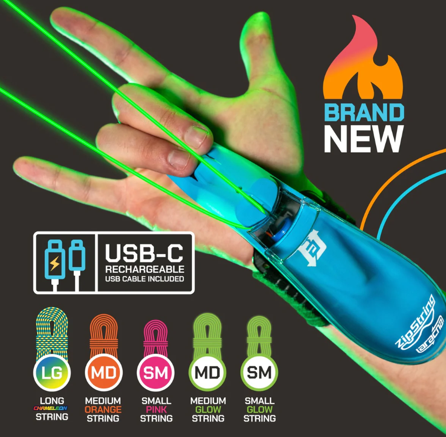 The world’s first string-launching webshooter! Launch, fly, and retract a glowing loop of string. Your superhero adventure starts now.